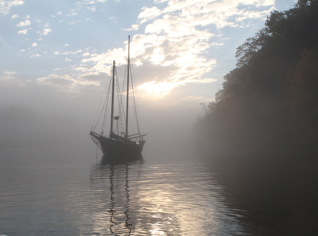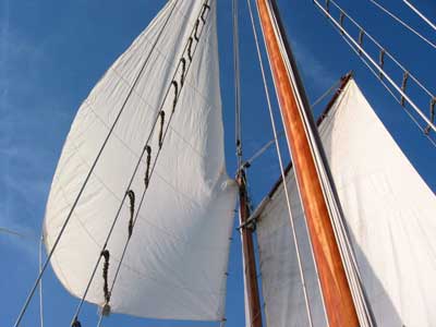 A significant advantage of the gaff-rigged schooner is that the sails are broken up into smaller, more easily handled sizes. Handling a smaller sail is physically easier, an important point when the wind really kicks up. While the rig looks more complicated, in reality it makes single-handed sail handling easier, because the sail sizes are more manageable and you have more options to choose from. Sailing a gaff-rigged schooner is never dull, the wide variety of sail combinations allows a lot of room for experimenting.
