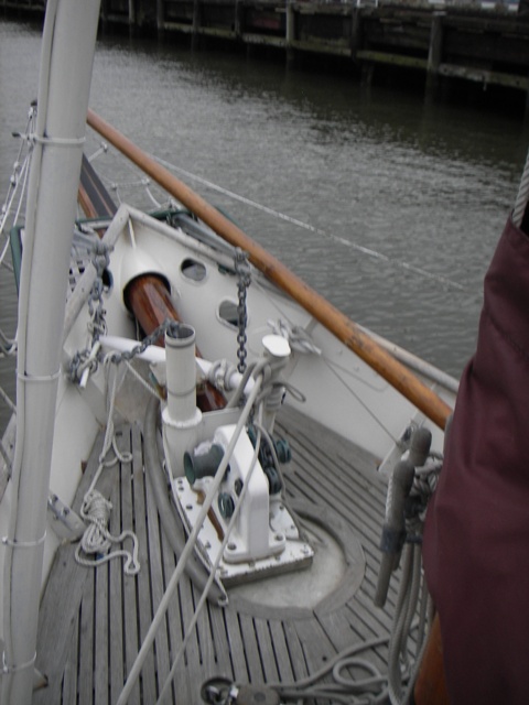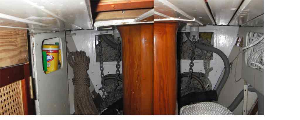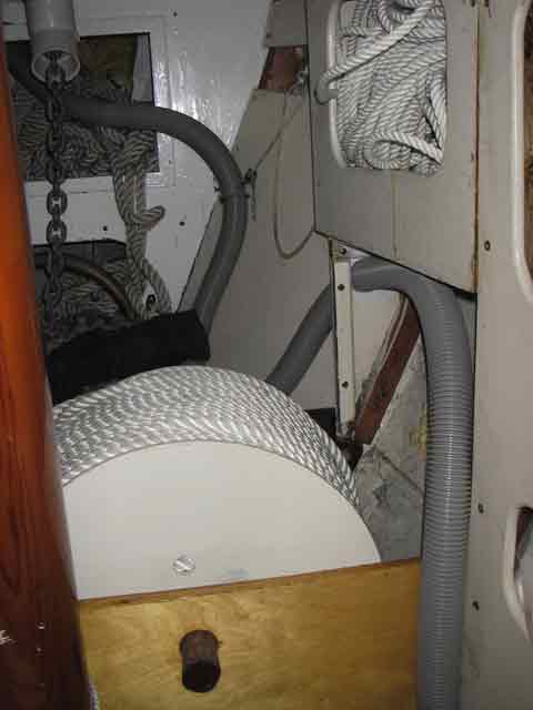 (Dacron) rope on a spool in forepeak. |