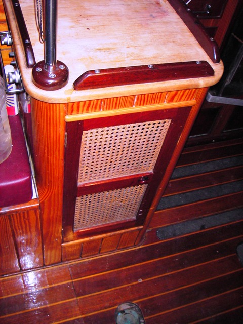 Sturdy, stainless steel (removable) tiller steering as well as traditional bronze/wood wheel steering (hydraulic). The wheel is nice because you can usually just walk away from it and it holds your course (pretty much). The tiller is nice when you want to feel the boat sailing. |