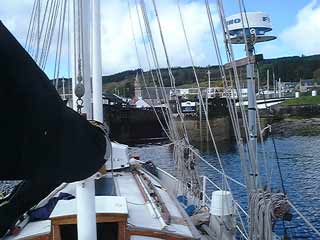 A week later, after the weather improved, we had a pleasant sail up to Ardishaig, then entered the sea lock at the Crinan Canal. The Crinan Canal is 9 miles long, with 15 locks, and allows one to bypass the Mull of Kintyre (which is a narrow point in a shipping lane, and a place that is often rough). Most of the locks (all manual) are operated by the crew of the boats using them.